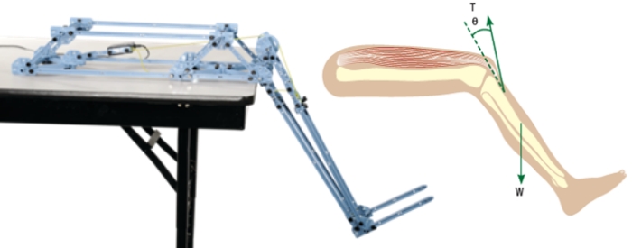 利用力傳感器測(cè)量人腿模型在不同角度支撐時(shí),股四頭肌的力量