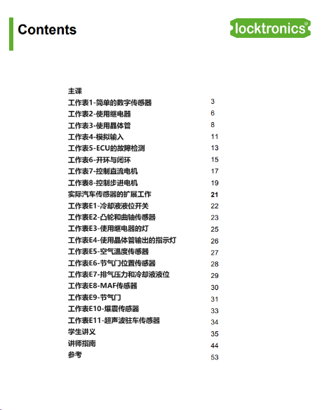 4、貼合市場(chǎng):Locktronic下的汽車(chē)系列產(chǎn)品都仿真實(shí)際汽車(chē)行業(yè)運(yùn)用的電路及傳感器等器件,使得學(xué)生在真實(shí)環(huán)境下學(xué)習(xí)。
